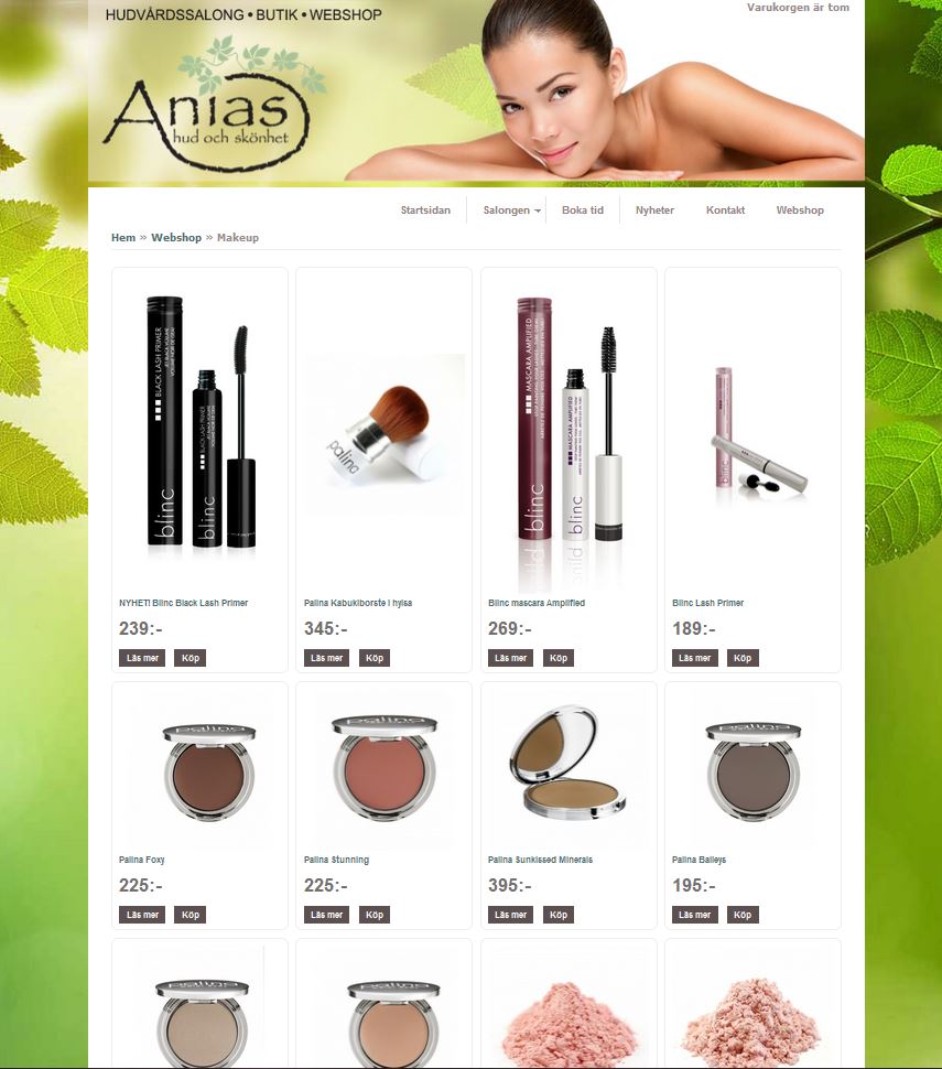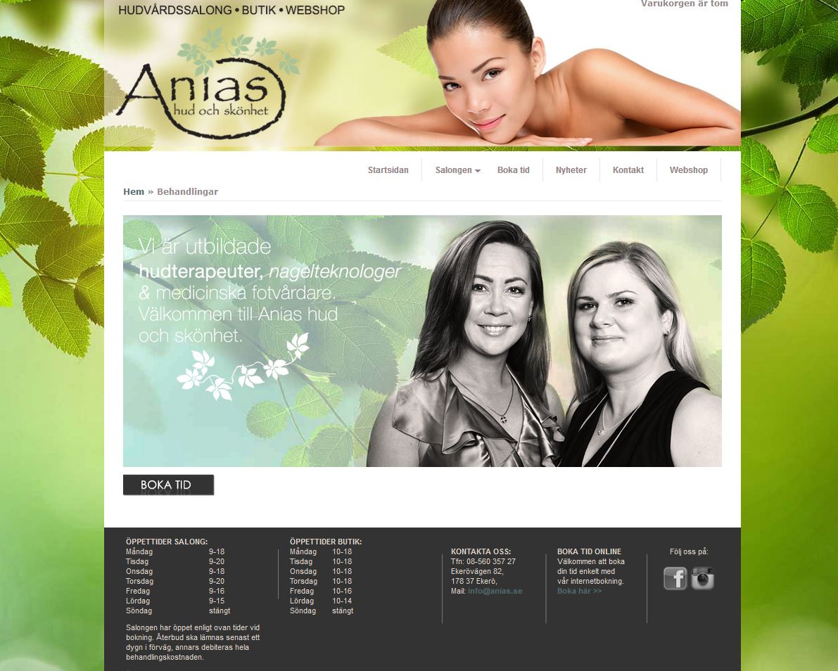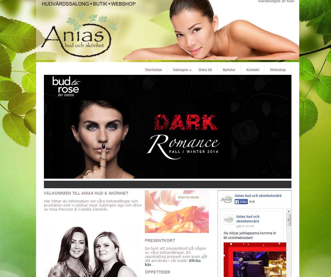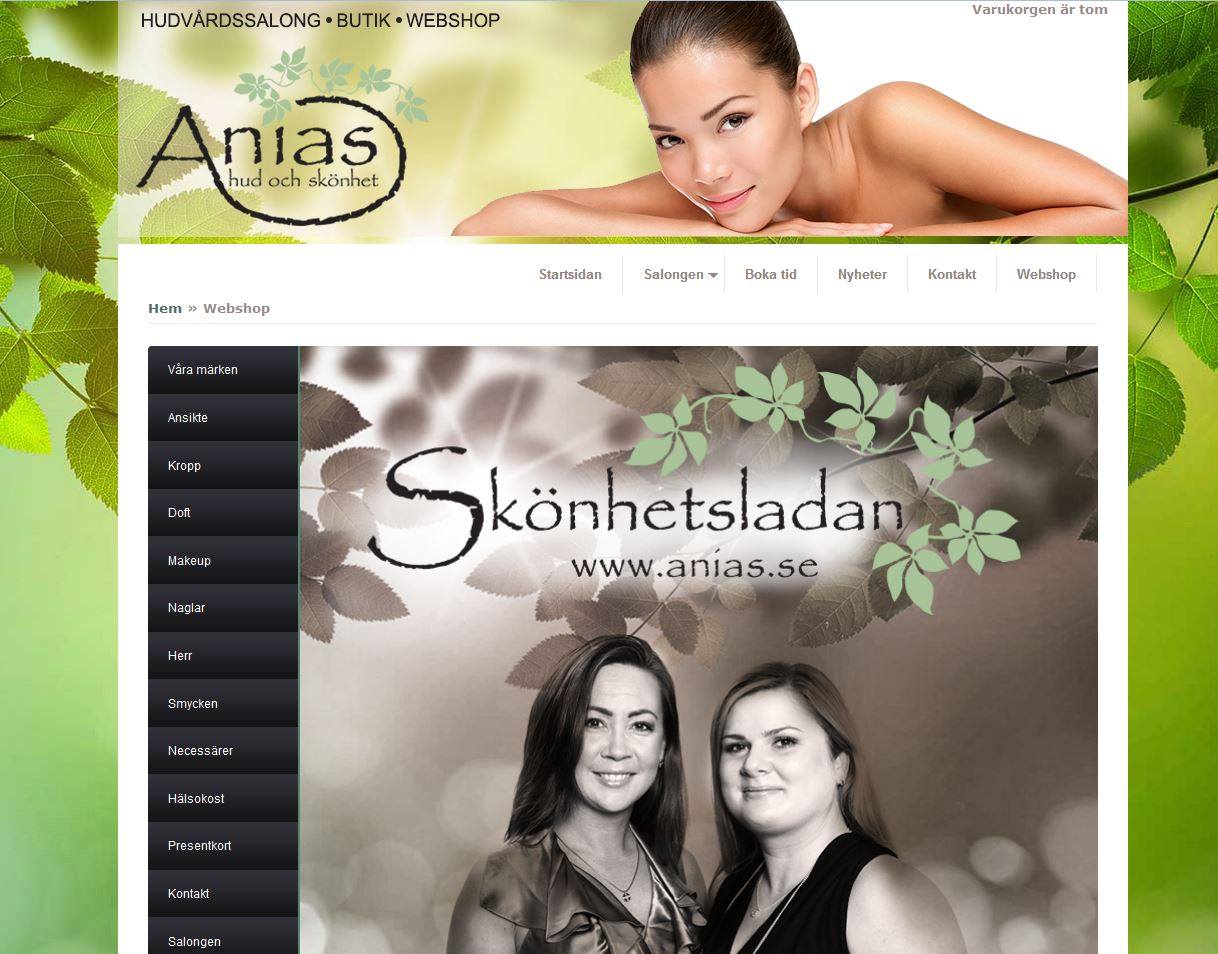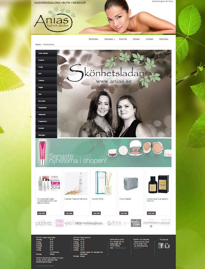 Artgraphic har jobbat många år med Anias hud & skönhet med webb och grafisk form. Den senaste hemsidan/shopen var den tredje i raden som Artgraphic har jobbat med. Textalk är använd som webbshoplösning.