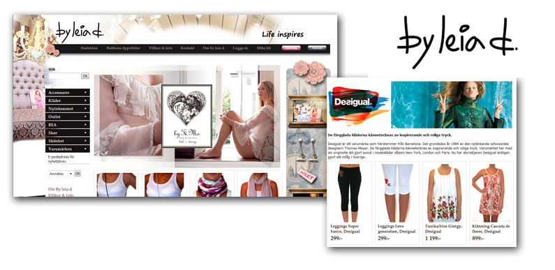 har jobbat med ny webshop för klädbutiken by leia d. Den fysiska butiken drivs av Mimmi Dubén och lligger i idylliska Troxhammar butiksby på Färingsö. Projektledning, grafisk form, bildhantering och viss del foto. By leia d säljer märken som Hunkydory, Diesel, By Malene Birger, Soaked in Luxury mfl. och har skor och accessoarer från bla. Plain Vanilla och Sixteen Minutes of Fame. Ett besök i webshopen är ett måste för dig som älskar kläder och vackra ting! Besök webshopen!